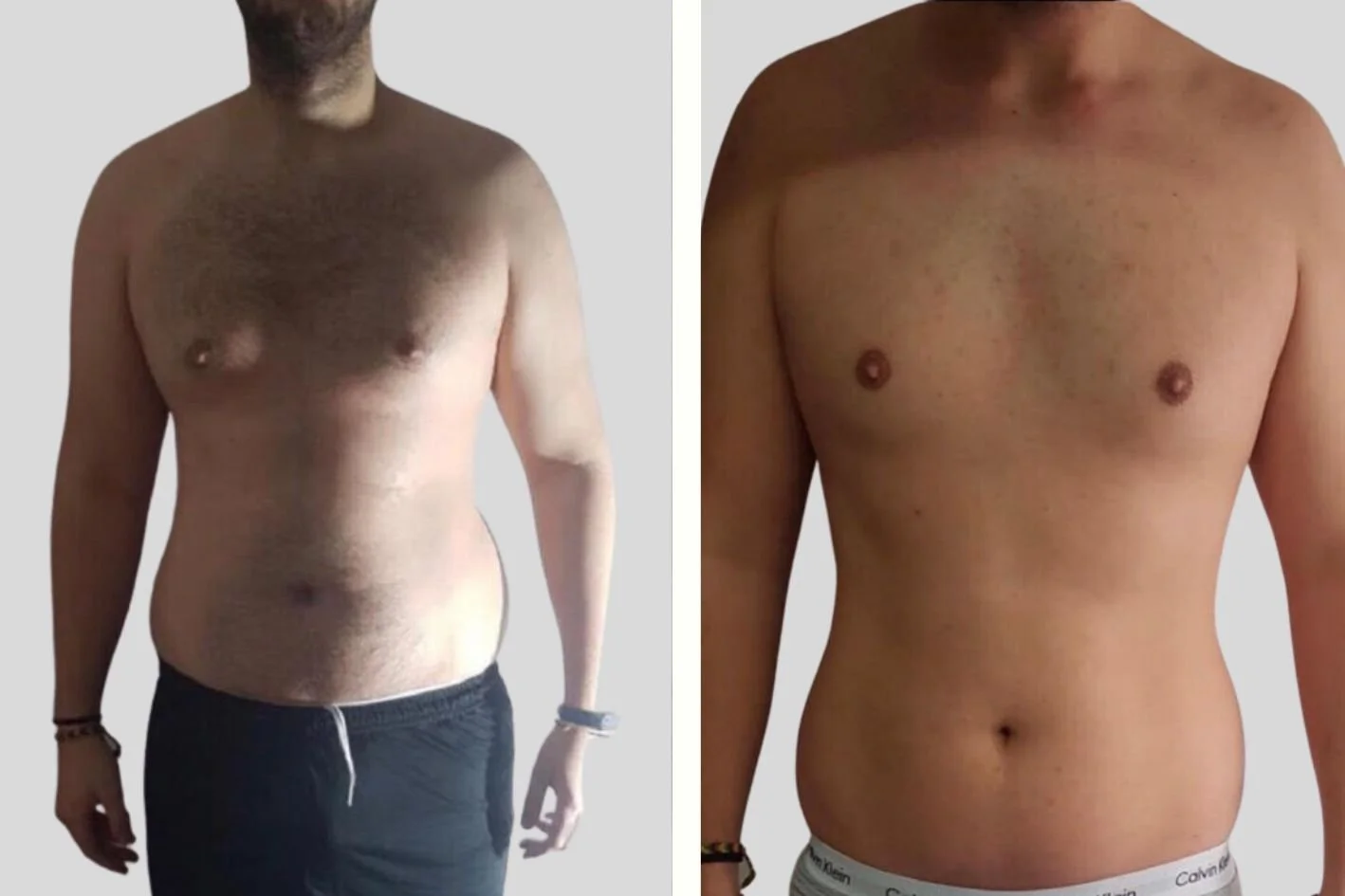 Now, look, 12 weeks later and 10kg down! Plus, as time passed, his protein intake also started to increase.