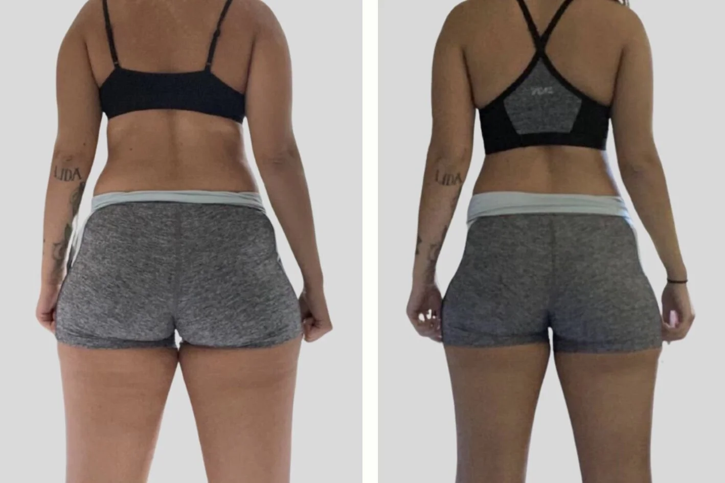 But this is where the magic of resistance training happens, resulting in plenty of muscle being built on the back of consistency. She weighs about the same in both images but with substantial visual differences.